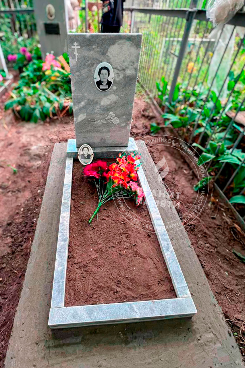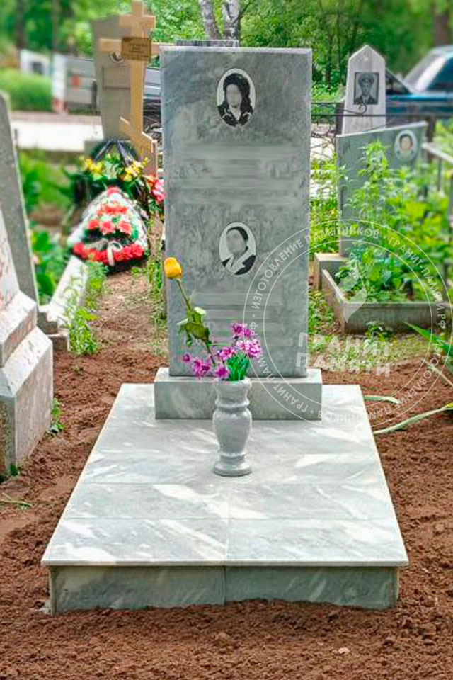 Мраморный памятник изготавливается из натурального мрамора Полевского месторождения — одного из самых известных и качественных российских мраморов. Этот благородный камень светло-серого цвета с характерным природным рисунком, обладает уникальной текстурой, которая подчеркивает торжественность и элегантность любого мемориального сооружения.